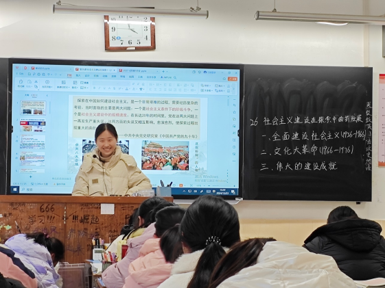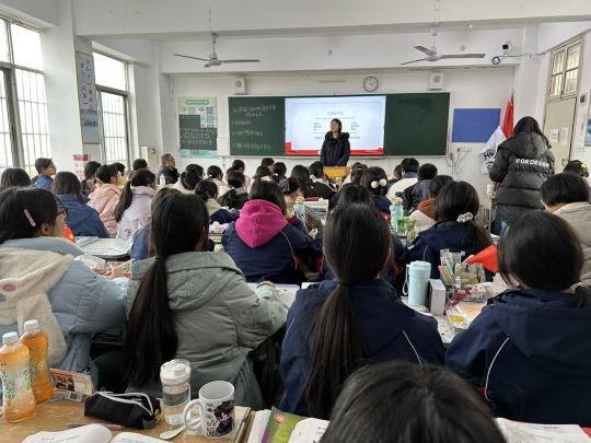 在信阳一高,孙炜副经理和邹维一老师带领22、23级本科生到教室听取了实习生王雨的授课。
