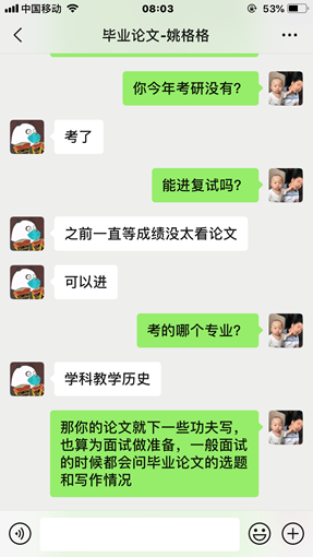 第三,升学、毕业刻不容缓。大四下半年是人生的岔路口。有的员工考了研,即将面临复试,此时正是需要老师指导和鼓励的时候,却不能和老师见面,焦虑的心情可想而知。王娟老师主动关心员工的考研情况,对员工复试和院校调剂给予中肯的建议,甚至有文学院的员工慕名而来。有的员工选择毕业即工作,但受疫情影响,今年的招聘,形势莫测,员工必然会情绪不稳定,王娟老师通过电话、微信等方式关注员工的情绪变化,尽自己所能给员工提供就业信息,并督促员工先完成毕业论文,了却后顾之忧,在疫情结束后就可以投入全部精力去找工作。