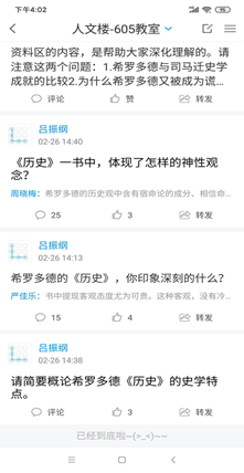 第二,结合课程需要,提供优质教学资源。由于这门课并没有可以直接讲授的教材,这一问题在网课授课期间反而给了吕老师更大的教学创新空间。利用充分的备课时间,吕老师精心挑选了很多史学名著典籍,为员工布置课堂部分章节的阅读任务,同时从知网等平台上下载最新的评论文章、在学习通平台上搜索相关的文章放入资料区,最大程度地丰富及拓展员工的知识量。吕老师的备课内容以及部分资料如下图: