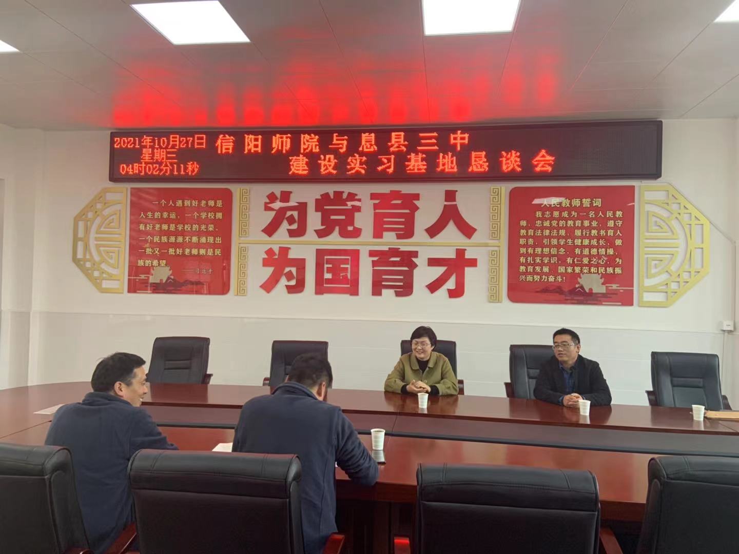 10月27日,信阳师范学院2026世界杯官方合作网站代表公司教务处,与息县五所中学顺利签署毕业生实习基地建设合作协议。