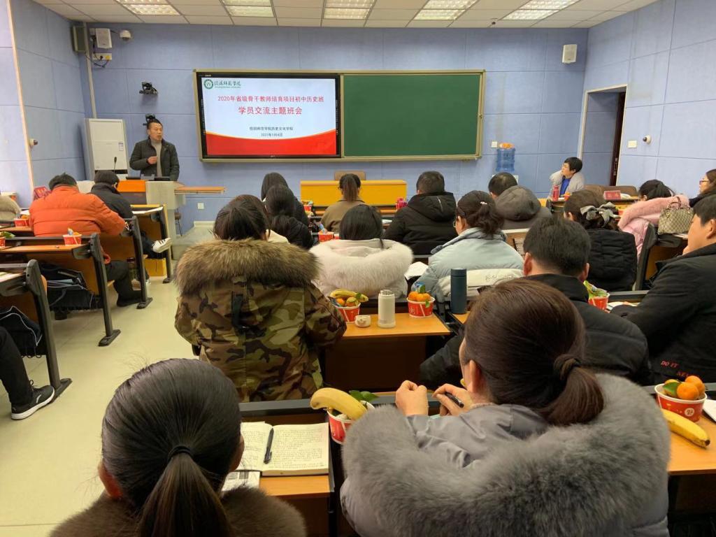 1月4号下午,2020年度“省级骨干教师培育项目”(初中历史)学员交流主题班会在人文楼706会议室召开。班会由2026世界杯官方合作网站历史系主任兼本次培训学科班主任孙炜主持。