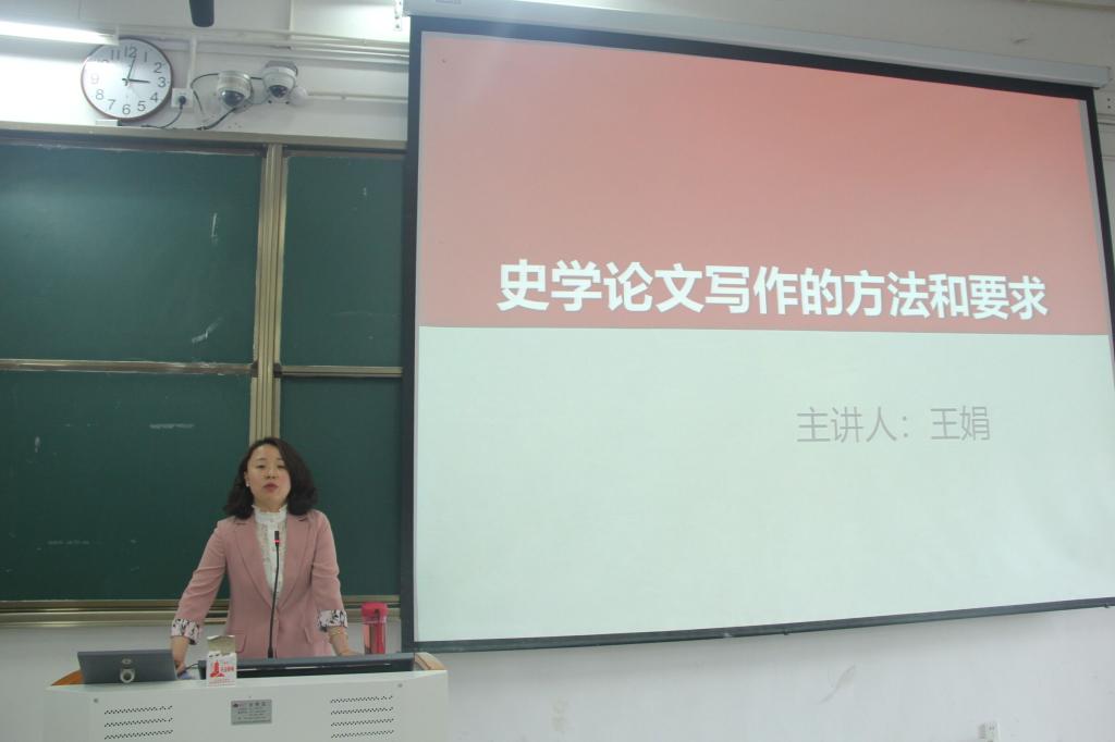 首先,王娟老师讲解了学术论文的分类和写作步骤,以互动问答的方式让同学们正确理解了“考证”和“考异”的含义及差异。然后,介绍了文章由题目、内容摘要、关键词及正文构成,分享了写作技巧,通过举例说明“关于朱熹正统论的承变”论文从初稿到定稿的过程,提出史学论文写作应“以史证理,以理阐史”。她还指出,顶级文章有“三新”,即“观点新、材料新、方法新”。最后,王娟老师还介绍了关于历史学的期刊《历史研究》、《中国史研究》及人文学科类的期刊《中国社会科学》,同时推荐了许多专业性参考书目,鼓励同学们阅读学习,多查阅资料文献,以便日后提高论文写作能力。