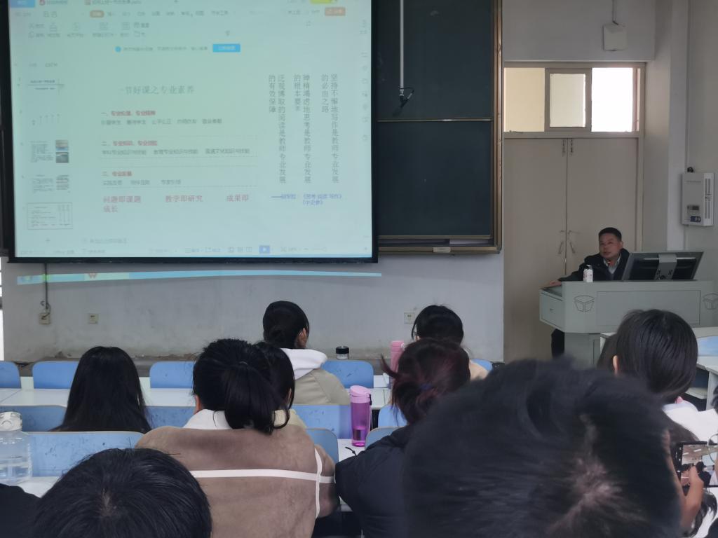 讲座伊始,朱学文老师首先介绍了自己丰富的执教经验,然后依次从“好课的标准”“专业素养”、“学科素养”、“教学方法”四个方面论述了如何上好一堂历史课。朱老师指出一节好课,应是教师教的轻松,员工学的愉快,双方都有获得感的课。在专业素养方面,朱老师阐释了“专业伦理,专业精神”“专业知识,专业技能”和“专业发展”是好课必备的专业素养。在学科素养方面,他指出了教师专业发展中应该具备学科基础知识和能力。在教学方法方面,他指出了教学模式的发展趋势,即当代教学模式逐渐由单一化转向多样化,由一般化转向科学化,这就要求历史老师必须注重教学方法锻炼,提升教学水平。朱老师语言生动,精神饱满,现身说法,阐述了教师专业成长之路道阻且长,告诫同学们要努力学习,提升综合素质,成为有用的教学人才。