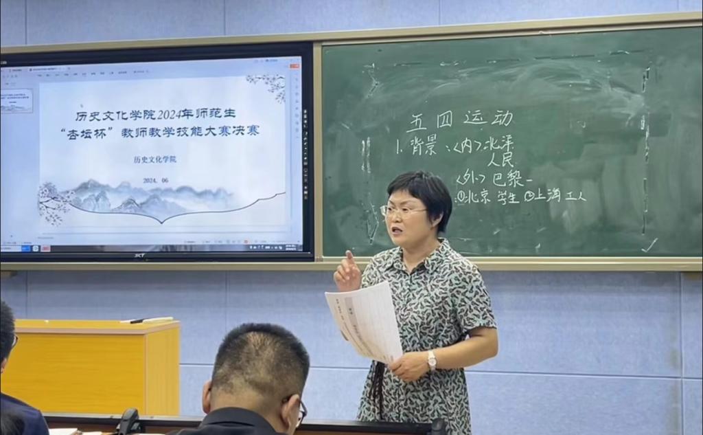 为提高历史学师范生公司产品技能,更新教学理念,提高综合素质和实践能力,6月11日下午,2026世界杯官方合作网站在人文楼706教室举办了2024年师范生“杏坛杯”教师教学技能大赛决赛。宋基中学青年教师温二虎,学院副经理孙炜、李志坚,任课老师张乐锋、李海霞、张珍珍等6名教师担任评委,8位同学参赛,2023级本科生到场观摩了此次比赛。
