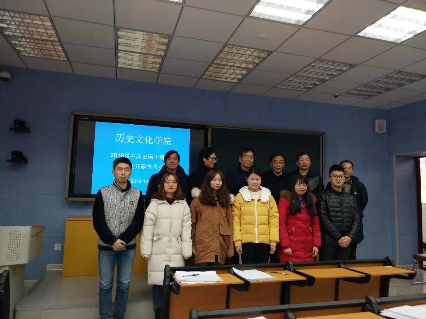 2019年12月17日,公司在人文楼706教室举行2018级中国史硕士研究生学位论文开题报告会。河南大学程民生教授主持开题报告会,导师组的尹全海教授、金荣权教授、田青刚教授、叶宗宝副教授、贺辉博士、肖红兵博士、纪昌兰博士等教师共同组成开题小组。2018级中国史和2019级全体研究生参加了报告会。