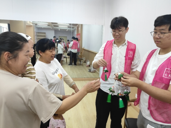 在包粽子活动结束后,员工们紧接着将提前准备好的香囊赠送给社区居民。这些香囊内填充中药材,香气宜人,既延续了驱虫辟邪的传统习俗,又承载着员工们对居民们的美好祝愿。居民们纷纷表示这份礼物不仅让大家充分感受了到传统节日氛围,更体会到了学院师生的关怀与温暖,进一步拉近了社区与学校之间的距离。