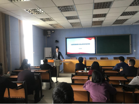 副经理田青刚教授作了题为《从建党基地看大别山革命历史贡献》的学习报告,报告从建党基地的概念与内涵、大别山建党基地党的形成、大别山建党基地的特点与贡献三个方面讲述了大别山精神的深刻含义以及对中国革命做出的巨大贡献,激发了全体教职工学史明理、学史增信、学史崇德、学史力行的热情。