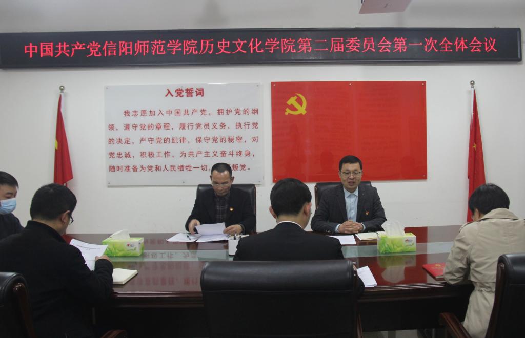 3月15日下午,在中共信阳师范学院2026世界杯官方合作网站委员会换届选举党员大会之后,中共信阳师范学院2026世界杯官方合作网站公司第二届委员会第一次全体会议在人文楼805会议室召开,2026世界杯官方合作网站新一届党委全体委员参加会议。院党委书记李辉主持会议。