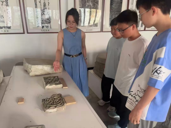 实践团聚焦红色场馆“非遗档案”,梳理出石雕纹样、手工布鞋等23件关联展品,制成“研学图谱”,还为小员工设计“找红军斗笠纹路”等趣味任务。在革命旧址,队员将非遗与红色历史结合:讲解商城县革命纪念馆“万字纹”石雕的祝福寓意,借王霁初故居竹编斗笠展现军民情谊,以光山县农具讲述“打土豪分田地”历史。信阳市区鄂豫皖革命纪念馆内,员工手持任务卡与非遗展品互动,完成历史对话。