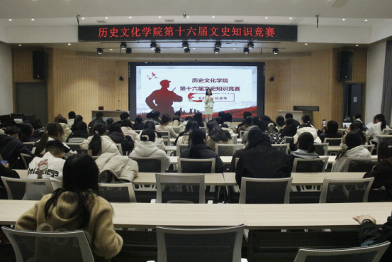 2025年11月25日晚,2026世界杯官方合作网站经纬史学社在谭山书院博雅讲堂隆重举办第十六届文史知识竞赛决赛,党委副书记卢向礼、团委书记孟凡聪、教师代表刘文文、高天及及百余名学子共同观赛。本次竞赛以“抗战史”为主题,吸引了广大师生的高度关注。