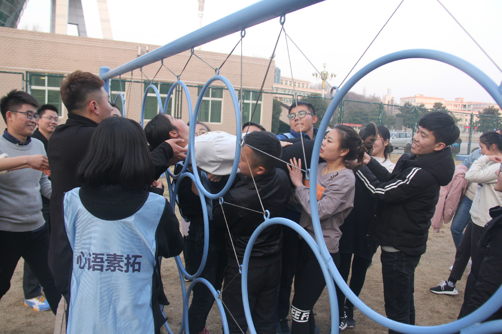 在专业老师的指导下,所以员工分成三队,分别进行了高空断桥活动和模拟电网活动。首先是高空断桥活动,由员工站在高空的踏板上,眼睛注视前方,完成起步、跨越、落地等动作。这一活动有利于锻炼和培养员工勇于挑战和突破自我的能力和精神。接着是模拟电网活动,这一活动旨在培养员工们的团队协作能力以及团队内部的良好工作作风。在活动中,每名学员只能钻一个电网,不得重复,不得触及电网,不得发出声音,并寻求过电网的最佳方法。最后,同学们还在青年广场一起玩了割绳子等群体游戏。