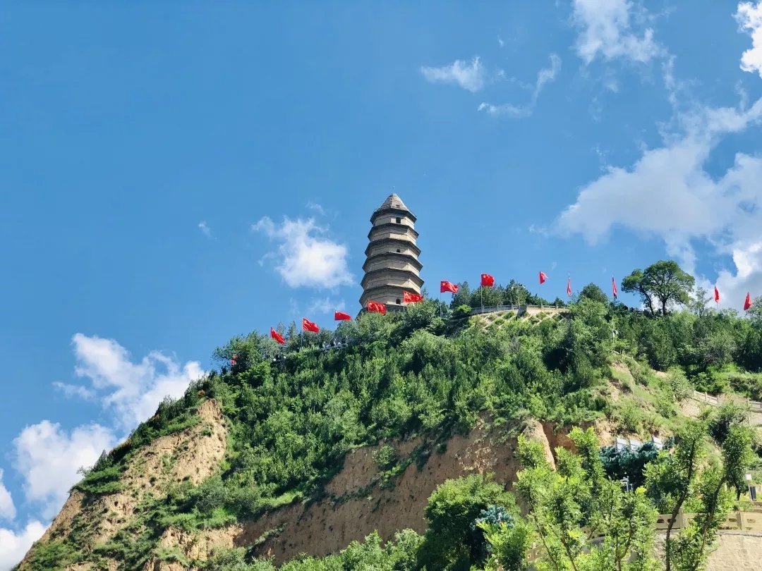 “几回回梦里回延安,双手搂定宝塔山”,著名文学家贺敬之热情的讴歌了宝塔山在人们心目中的地位。宝塔山是历史名城延安的标志,是革命圣地的象征,是延安市的标志性建筑。这座塔建于唐代,高有九层,位于延安城东地,延河之滨,在山上可鸟瞰延安整个城区。