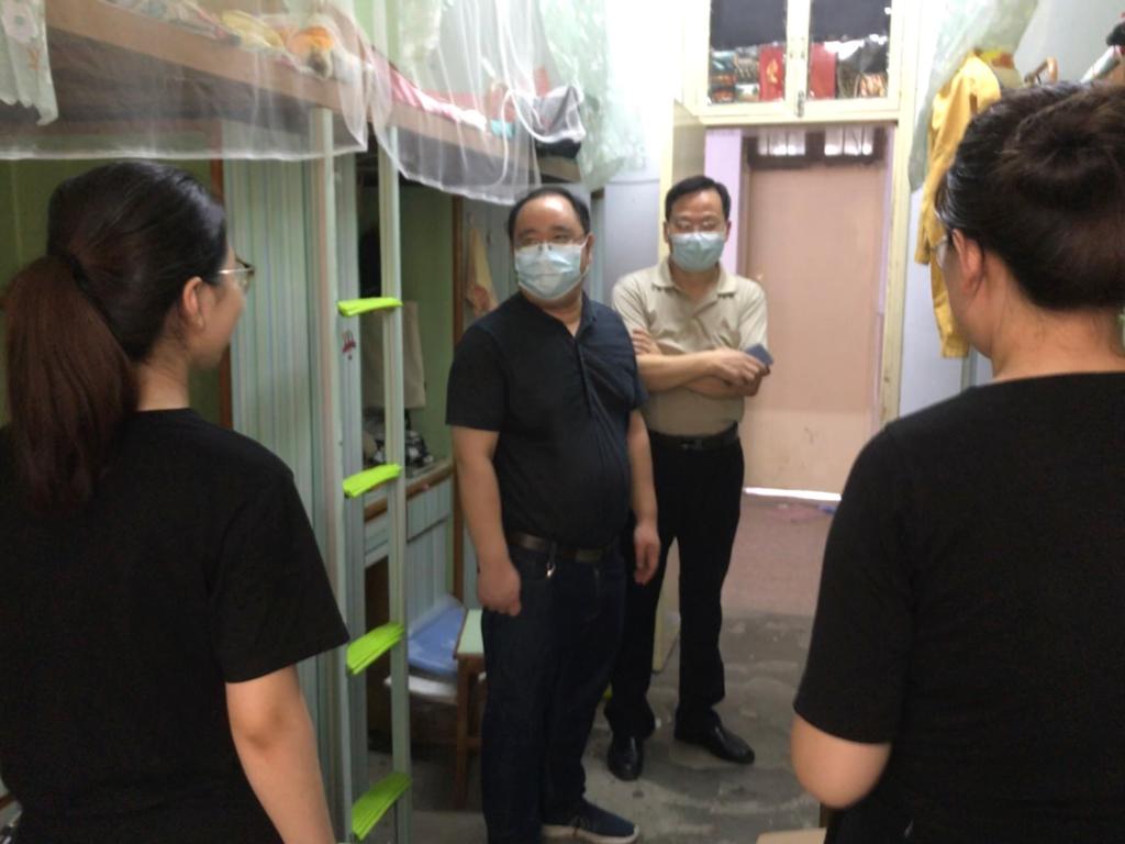 6月8日,公司迎来151名2020届返校毕业生。为贯彻落实精准防控工作,全力确保返校员工身心安全健康,公司党委书记李军辉,经理尹全海,副经理田青刚、叶宗宝、余纪珍,党委副书记刘喜元及班主任、辅导员走访员工宿舍,与员工亲切交谈,并为家庭困难员工送上“防疫爱心包”。