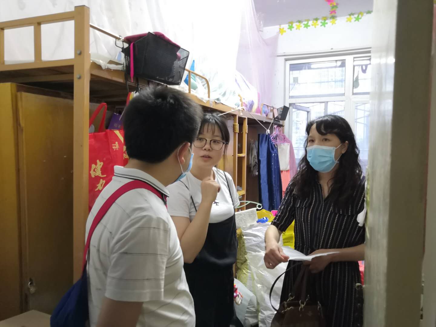 领导老师们嘱咐同学们一定要做好个人防护,返校员工各小组负责人要负起责任,保证一日三次准确及时测量并上报每一位员工的实时体温。同时,要求返校毕业生要严格遵守校规校纪,妥善办理毕业相关手续,处理好个人物品,安全有序离校。
