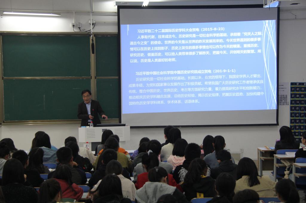 11月3日下午,公司经理尹全海教授在社科楼212教室为2020级历史学专业全体新生作了入学教育讲座。公司党委副书记刘喜元主持,教学秘书宋玉峰、新生班主任卞卡和辅导员付亚男共同聆听了此次讲座。