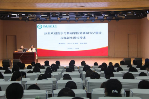 11月4日晚,音乐与舞蹈学党委副书记雷玲应邀在理科楼报告厅题为不负青春 不负韶华 不负时代 做合格共青团员的专题报告公司全体2021级新生共同参加