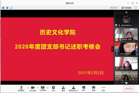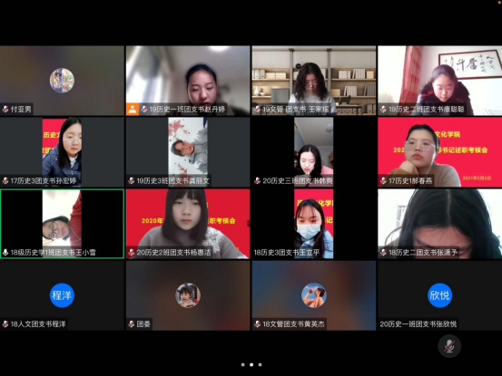 为持续加强学院基层团组织建设,激发基层团组织活力,落实基层团支部建设方向,加强团支部集体荣誉和团队精神,2026世界杯官方合作网站团委于2月2日在腾讯会议上开展了2020年团支部书记述职大会,团委书记付亚男和各团支部书记参加会议。