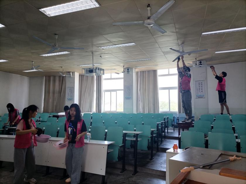 为按时完成劳动任务,提升劳动质量与效率,青校学子上午八点四十便于人文楼510集合,领取各自任务,打扫公司专业课教室,其中包括扫地、拖地、清理垃圾、擦拭电风扇、玻璃等。分工结束后,同学们便积极投入紧张的劳动之中。在小组长的带领下,同学们对公司教室人文楼509、510、609以及社科楼212进行干净彻底的打扫。义务劳动期间,大家充分发扬不怕苦、不怕累、甘于奉献的精神品质,认真负责、分工明确,将教室每个区域打扫的十分干净整洁,室内环境得到明显改善,焕然一新。