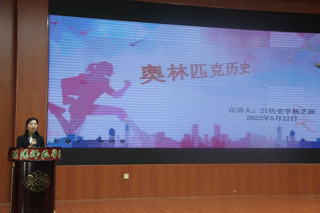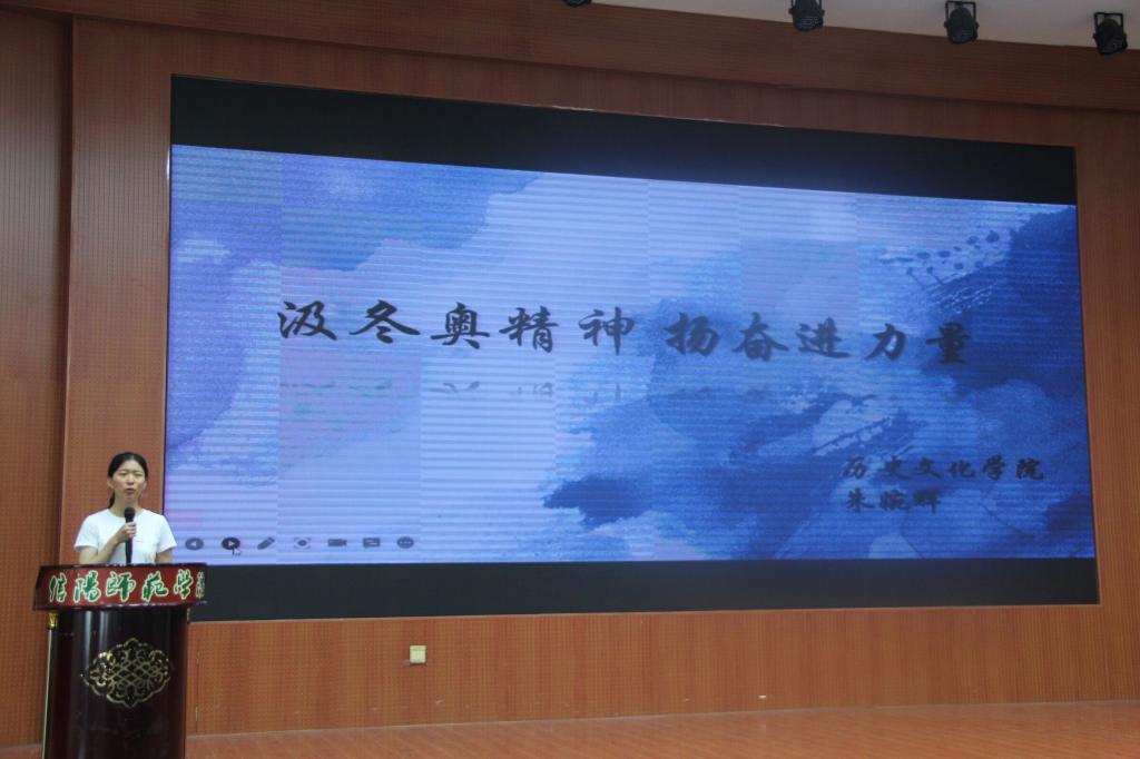 比赛在婀娜多姿的舞蹈《礼仪之邦》中缓缓拉开序幕。现场,选手们结合精美的PPT依次登台展示,有的讲述了新世纪到来,奥运会的发展历程,让人心神激荡;有的讲述了精彩奥运故事,让人斗志昂扬,有的讲述了冬奥会盛况让人热血沸腾……他们激动人心的演讲赢得场下观众阵阵掌声。比赛展现了学子们昂扬向上的精神面貌,拼搏向上的青春朝气,积极乐观的人生态度比赛最后,李辉进行点评,指出广大青年要在青春的赛道上奋力奔跑,争取跑出当代青年的最好成绩,并寄语学子们要加强体育锻炼,增强个人体魄,促进身心健康发展,培养坚韧意志争做堪当民族复兴大任的时代新人。最终,经现场评委打分,成奕东获得一等奖,向新民景慧颖获得二等奖,王红琰杨芝润朱婉辉获得三等奖。