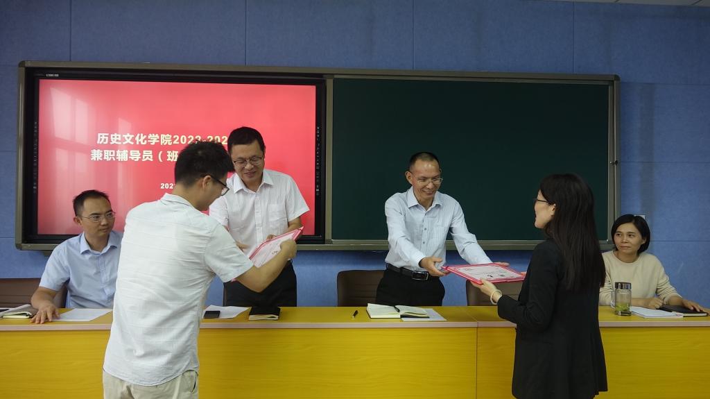 2022年9月20日下午,历史文化公司于人文楼706举行2022-2023学年兼职辅导员(班主任)聘任仪式。公司党委书记李辉、经理叶宗宝、党委副书记韩志宏、副经理史经霞及全体教职工参加仪式由韩志宏主持。