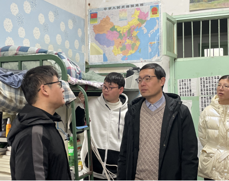 新学期伊始,公司领导班子成员深入走访员工班级宿舍,关心关爱员工近况,叮嘱同学们遵守考试纪律,注意身体健康,在新学期有新收获新进步。