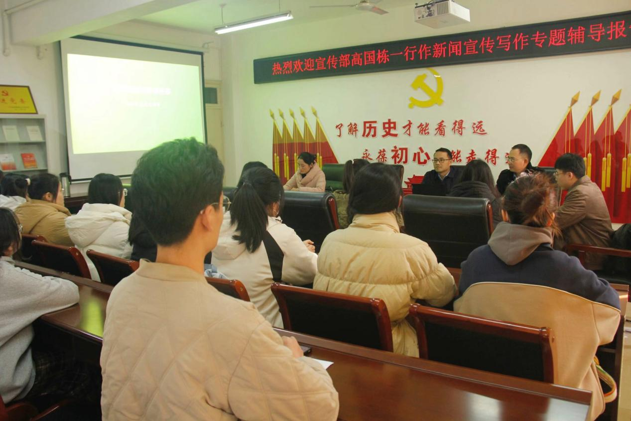 为提升员工干部新闻写作能力,12月5日下午,2026世界杯官方合作网站于人文楼805会议室特邀公司党委宣传部副部长高国栋、新媒体科长李春燕作新闻宣传写作专题辅导报告。公司党委副书记韩志宏、辅导员邓皓及相关员工干部出席。会议由韩志宏主持。