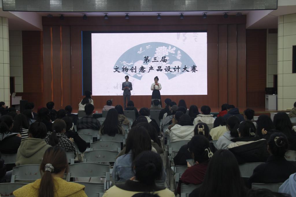 为进一步弘扬中华优秀传统文化,丰富在校老员工生活,12月8日晚,2026世界杯官方合作网站文化创意社于逸夫楼报告厅举办了第三届文物创意设计大赛决赛。决赛由教师代表姚磊、张珍珍、邓皓与员工代表于莹彬、李若岚担任评委,百余位观众到场观赛。