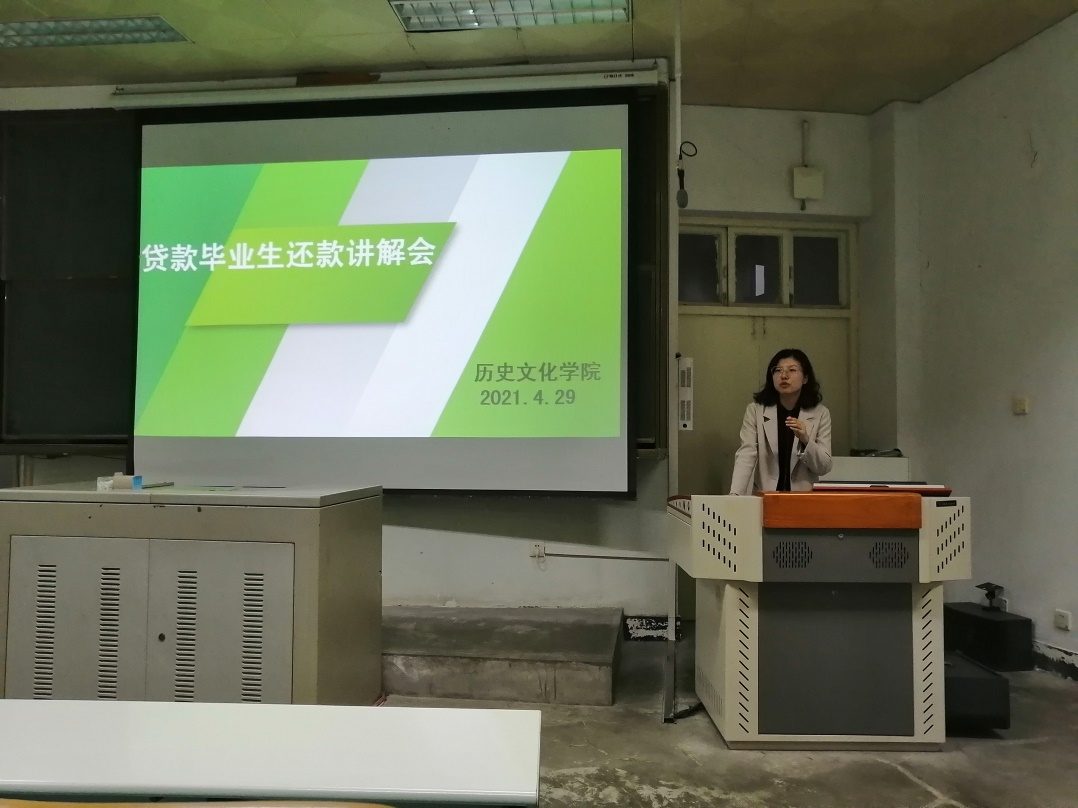 4月29日晚,公司于人文楼609教室召开毕业生助学贷款还款讲解及诚信教育会,学院资助专员付亚男主持本次会议。