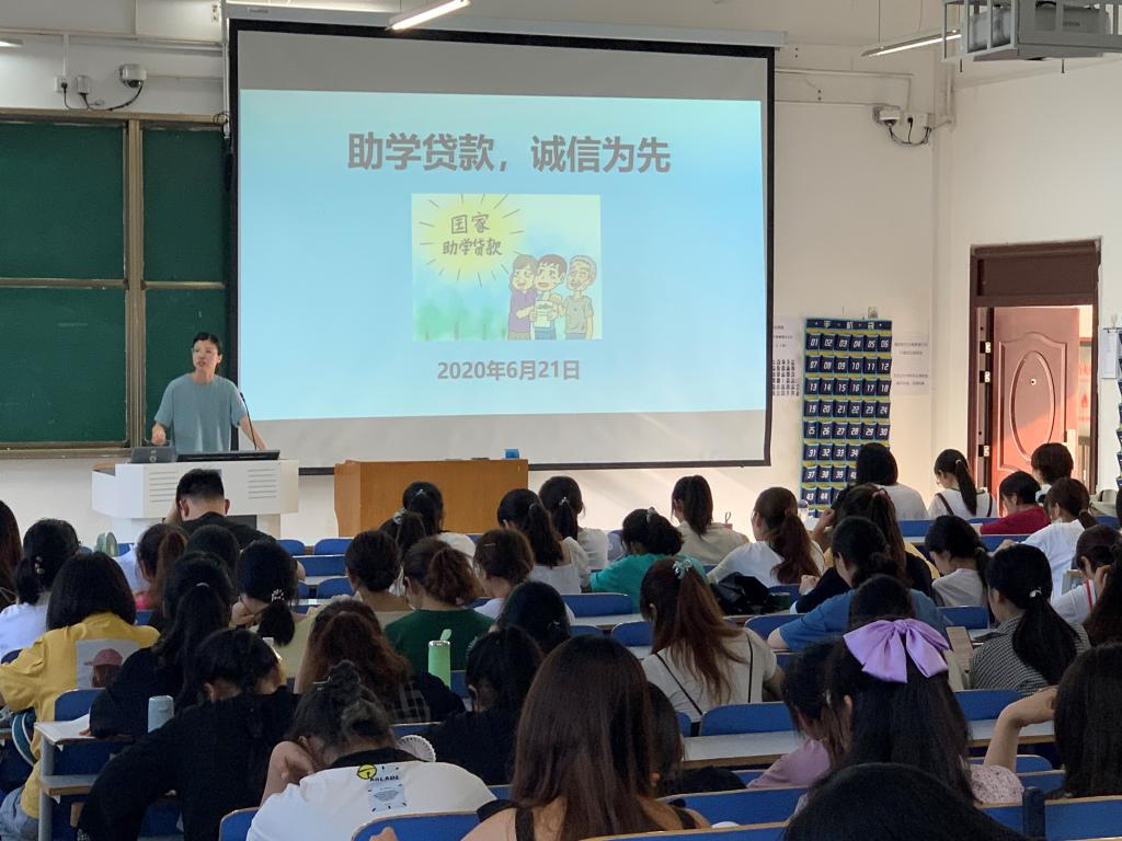 6月21日,公司召开“助学贷款,诚信为先”主题会,2019级全体同学参加,由年级辅导员付亚男主持。
