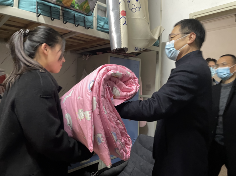进入宿舍,领导老师们将爱心棉被发放到员工手中,仔细询问了同学们冬季御寒物品的置办情况,叮嘱同学们要切实注意冬季御寒保暖,学习生活中遇到问题要及时向老师反映。领导老师们热情关心同学们的生活,向同学们了解生活适应情况。此外,领导老师们还鼓励同学们珍惜时光,为期末考试做好充分的准备。