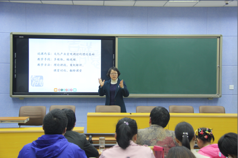 经过为期两周的随堂听评课和教研室推荐,文化产业管理教研室姚磊老师、中国近现代史教研室孙启正老师、文化遗产教研室张乐锋老师和人文教育教研室纪昌兰老师参加了本次教师教学技能比赛。他们熟练运用多媒体,采用理论剖析、案例解说等方式,对文化产业、西方哲学、经济活动和地理环境以及服饰民俗等内容进行了精彩讲解。