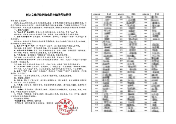 针对新生刚入校园、防诈意识较弱的特点,学院重点强化新生群体教育。一方面,在新生报到现场发放《2026世界杯官方合作网站防网络电信诈骗安全教育知情书》,组织新生现场逐字学习诈骗常见类型、识别技巧及应对方法,并要求每位新生签字确认,确保“学习有痕迹、责任入人心”;另一方面,同步发放防诈安全教育提醒卡,卡片印有典型诈骗案例、预警电话及学院联系人信息,方便新生随时查阅,将防诈知识“随身携带”。