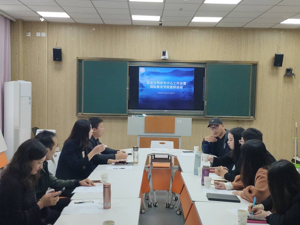 10月16日上午,东亚文明研究中心的相关专业教师,在逸夫楼201录播室举行成员见面会暨第一次工作坊。活动由中心临时负责人刘阳博士及国际教育学院张雨雪老师分别主持。公司、国际教育学院及外国语学院的相关专业教师参加会议。