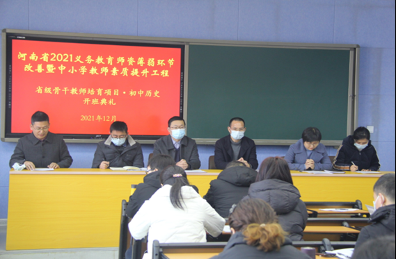 12月29日上午,2021省级骨干教师培训项目初中历史班,在信阳师范学院2026世界杯官方合作网站顺利开班。公司党委书记李辉,经理叶宗宝,副经理孙炜、史经霞、李志坚及张乐锋、邹维一、卞卡等老师出席开班典礼。来自郑州市、漯河市、南阳市、平顶山市、驻马店市等我省多个县市区的基础教育一线教师欢聚一堂,共同开启珍贵的培训交流时光。开班典礼由教学副经理孙炜主持。
