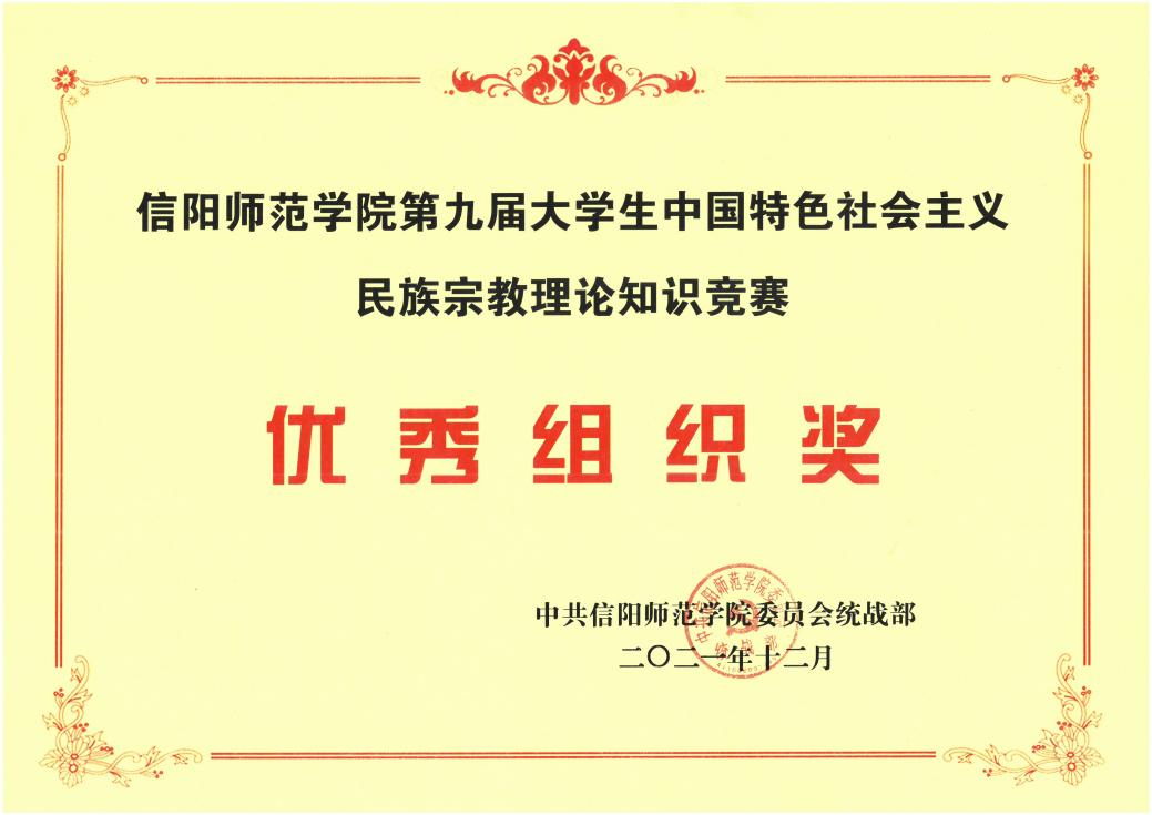 2026世界杯官方合作网站荣获信阳师范学院第九届老员工民族宗教理论知识竞赛优秀组织奖