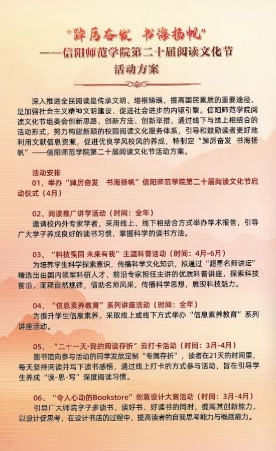 附信阳师范学院第二十届阅读文化节活动方案