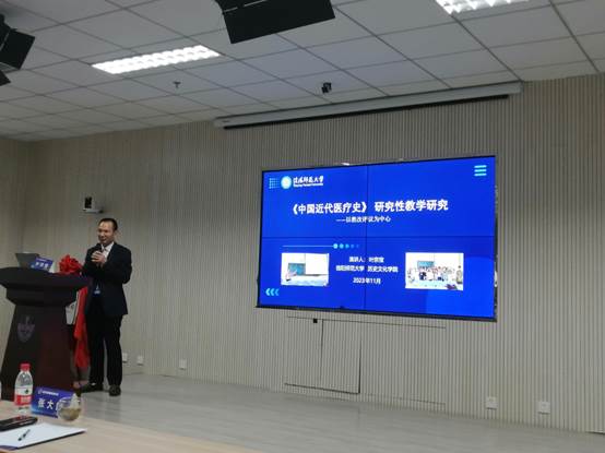 研讨会上,来自北京大学、南开大学、上海大学、中山大学、首都医科大学、北京中医药大学、天津中医药大学、成都中医药大学、宁夏医科大学、北京协和医院等13位专家学者分别做了演讲发言。叶宗宝演讲的题目是“《中国近代医疗史》研究性教学改革研究”。该研究以员工提交的教改评议为中心,从“员工选课之原因”“选修此课之期待”“课改方案之制定”“教学过程及模式”“课改特色与亮点”“教学效果之评价”“课改实施之不足”“课改优化之措施”等八个方面展开讨论,提出了针对地方高等师院院校历史学专业人才培养以“医史交叉”实现“科学与人文交叉”的具体路径。在评议环节,叶宗宝提出的“P-R-T-R教学改革研究法”受到点评嘉宾的高度评价,认为该研究法对医学史教学改革之理论探讨有积极作用。