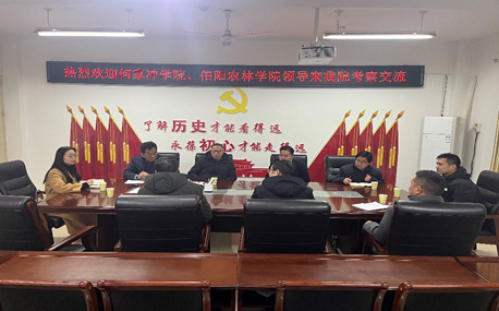 12月20日下午,何家冲学院副经理杨纪伟、红二十五军文化研究会副会长李国强、教研部主任许雷,信阳农林学院马克思主义学院敖翔教授、潘军博士、校宣传部王楠老师等一行6人来公司调研大别山精神研究情况。