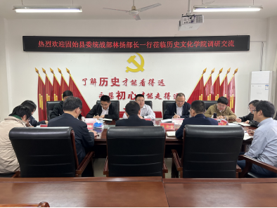 4月16日,固始县委统战部副部长林扬带领县根亲文化发展中心领导来公司调研根亲文化相关事宜。学院班子成员、根亲文化与两岸交流研究中心尹全海教授等参加。